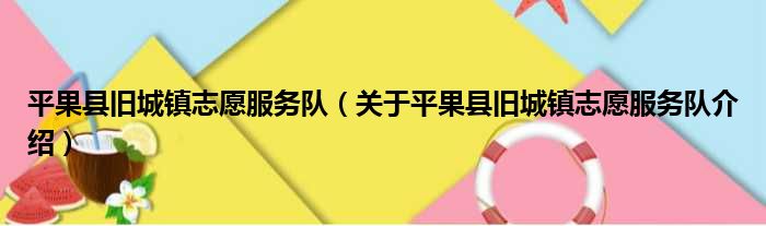 平果縣舊城鎮志愿服務隊(關于平果縣舊城鎮志愿服務隊介紹)