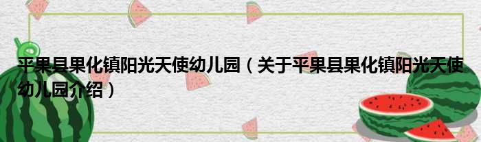 平果縣果化鎮陽光天使幼兒園(關于平果縣果化鎮陽光天使幼兒園介紹)
