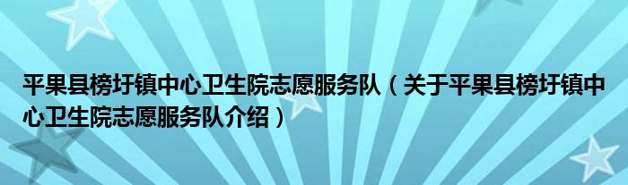 平果縣榜圩鎮中心衛生院志愿服務隊(關于平果縣榜圩鎮中心衛生院志愿服務隊介紹)
