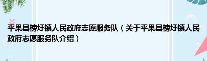 平果縣榜圩鎮人民政府志愿服務隊(關于平果縣榜圩鎮人民政府志愿服務隊介紹)