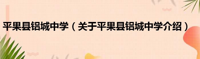 平果縣鋁城中學(關于平果縣鋁城中學介紹)