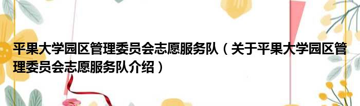 平果大學園區管理委員會志愿服務隊(關于平果大學園區管理委員會志愿服務隊介紹)
