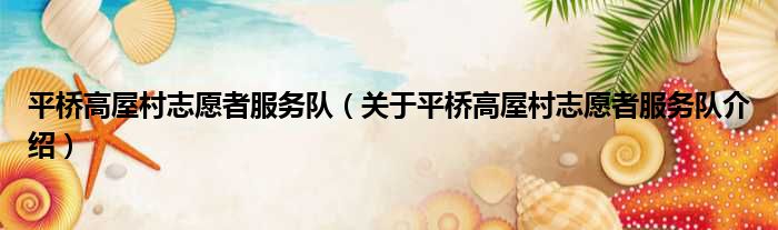 平橋高屋村志愿者服務隊(關于平橋高屋村志愿者服務隊介紹)