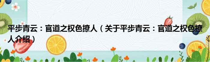 關于平步青云:官道之權色撩人到此分享完畢,希望能幫助到您。