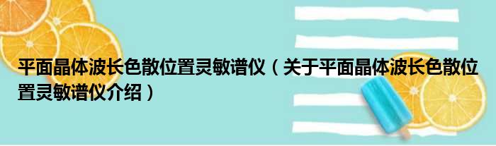 平面晶體波長色散位置靈敏譜儀(關于平面晶體波長色散位置靈敏譜儀介紹)