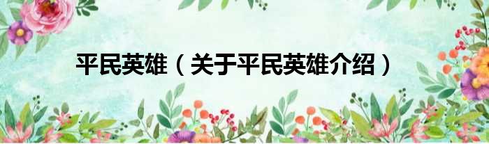 大家好,笑笑來為大家解答以上的問題。平民英雄,關于平民英雄介紹這個很多人還不知道,現在讓我們一起來看看吧!