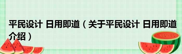 平民設計 日用即道(關于平民設計 日用即道介紹)
