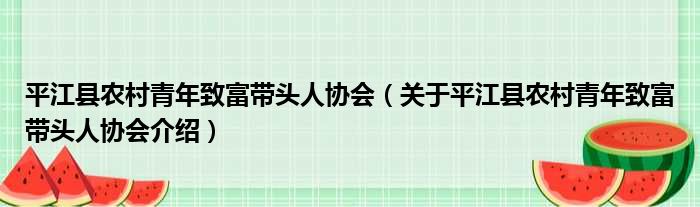 關于平江縣農村青年致富帶頭人協會到此分享完畢,希望能幫助到您。