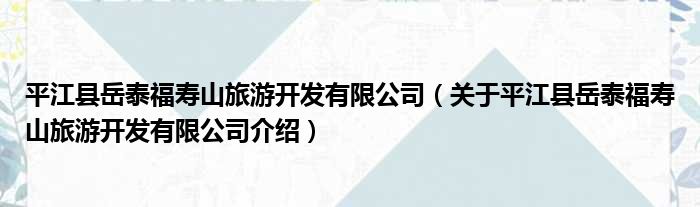 平江縣岳泰福壽山旅游開發有限公司(關于平江縣岳泰福壽山旅游開發有限公司介紹)