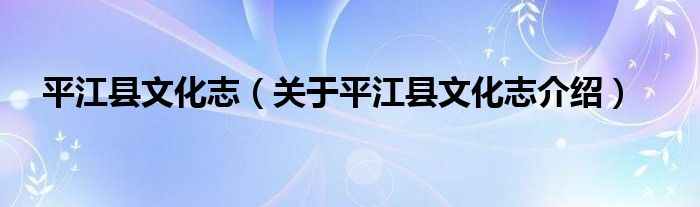 平江縣文化志(關于平江縣文化志介紹)