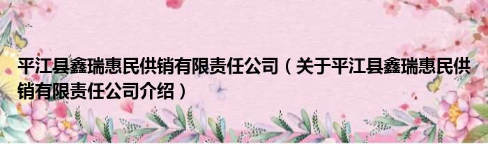 平江縣鑫瑞惠民供銷有限責任公司(關于平江縣鑫瑞惠民供銷有限責任公司介紹)