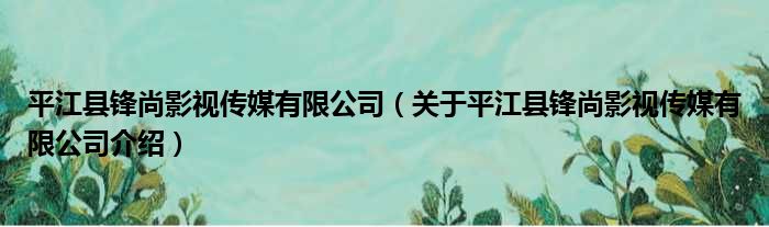 平江縣鋒尚影視傳媒有限公司(關于平江縣鋒尚影視傳媒有限公司介紹)