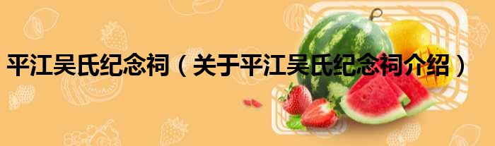 平江吳氏紀念祠(關于平江吳氏紀念祠介紹)