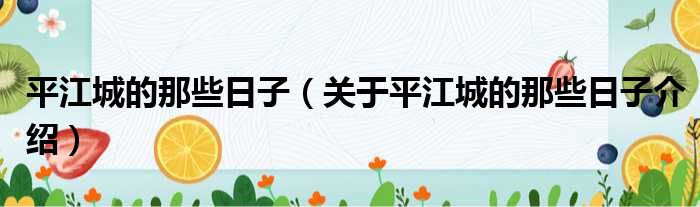關于平江城的那些日子到此分享完畢,希望能幫助到您。
