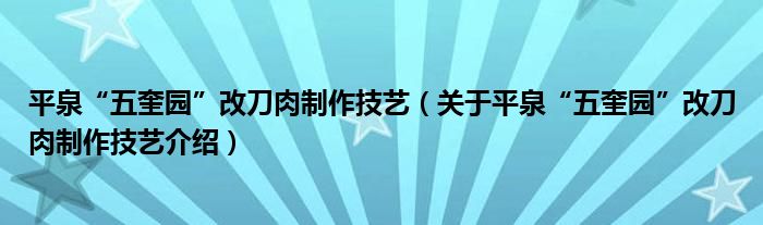 平泉“五奎園”改刀肉制作技藝(關于平泉“五奎園”改刀肉制作技藝介紹)