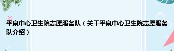 平泉中心衛生院志愿服務隊(關于平泉中心衛生院志愿服務隊介紹)