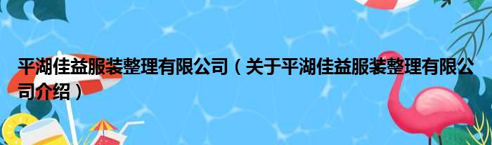 平湖佳益服裝整理有限公司(關于平湖佳益服裝整理有限公司介紹)