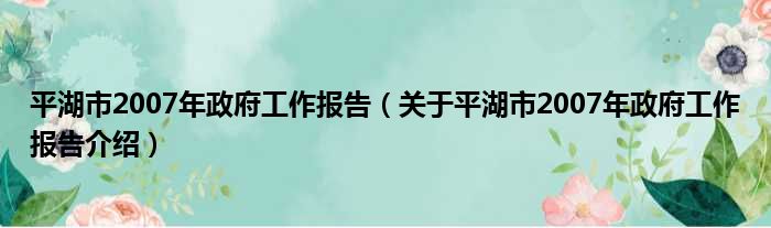 關于平湖市2007年政府工作報告到此分享完畢,希望能幫助到您。