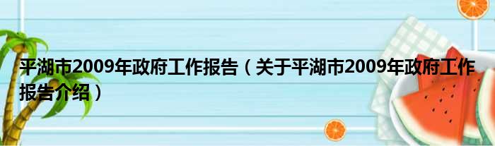 平湖市2009年政府工作報告(關于平湖市2009年政府工作報告介紹)