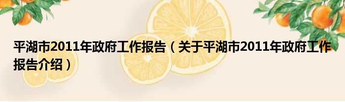 平湖市2011年政府工作報告(關于平湖市2011年政府工作報告介紹)