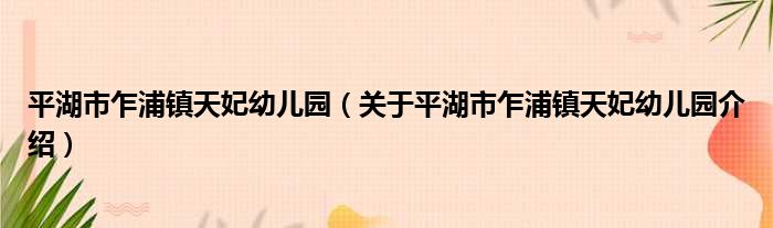 平湖市乍浦鎮天妃幼兒園(關于平湖市乍浦鎮天妃幼兒園介紹)