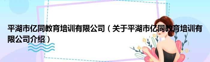 平湖市億同教育培訓有限公司(關于平湖市億同教育培訓有限公司介紹)