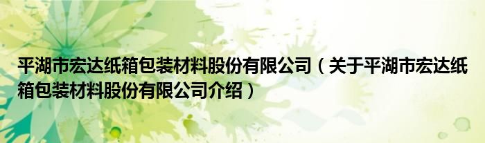 平湖市宏達紙箱包裝材料股份有限公司(關于平湖市宏達紙箱包裝材料股份有限公司介紹)