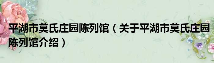 平湖市莫氏莊園陳列館(關于平湖市莫氏莊園陳列館介紹)