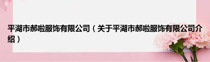 平湖市郝啦服飾有限公司(關于平湖市郝啦服飾有限公司介紹)