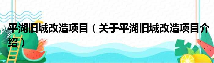 平湖舊城改造項目(關于平湖舊城改造項目介紹)