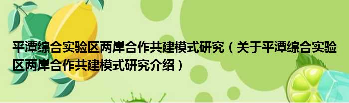 平潭綜合實驗區兩岸合作共建模式研究(關于平潭綜合實驗區兩岸合作共建模式研究介紹)