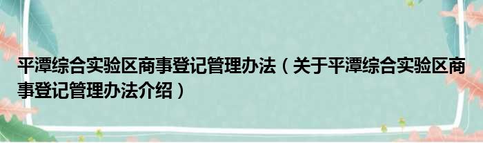 關于平潭綜合實驗區商事登記管理辦法到此分享完畢,希望能幫助到您。