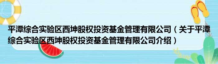 平潭綜合實驗區西坤股權投資基金管理有限公司(關于平潭綜合實驗區西坤股權投資基金管理有限公司介紹)