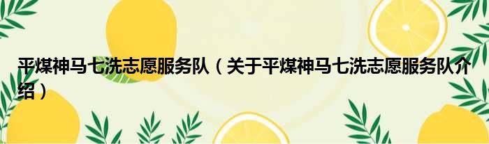 平煤神馬七洗志愿服務隊(關于平煤神馬七洗志愿服務隊介紹)