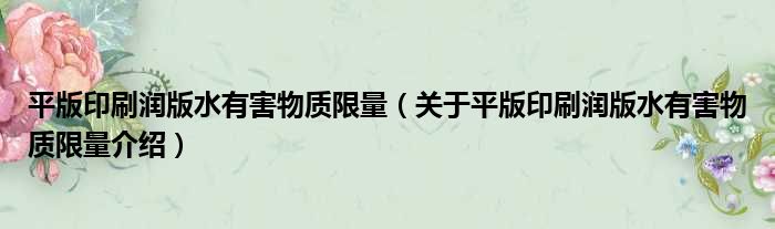 平版印刷潤版水有害物質限量(關于平版印刷潤版水有害物質限量介紹)