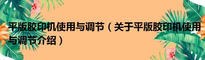 平版膠印機使用與調節(關于平版膠印機使用與調節介紹)