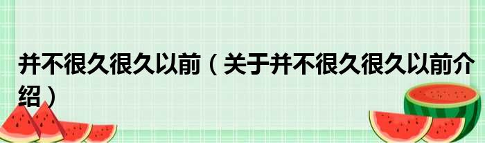 關于并不很久很久以前到此分享完畢,希望能幫助到您。