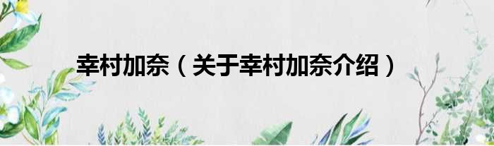 幸村加奈(關于幸村加奈介紹)