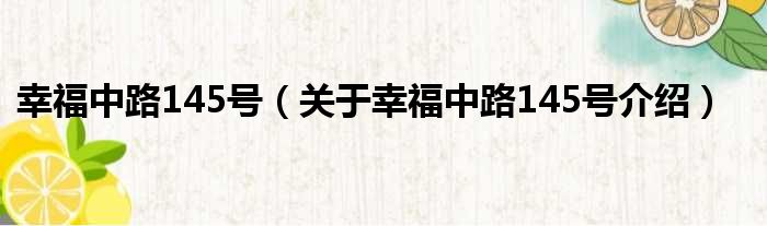 關于幸福中路145號到此分享完畢,希望能幫助到您。