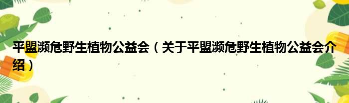 平盟瀕危野生植物公益會(關于平盟瀕危野生植物公益會介紹)