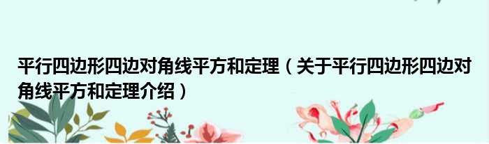 平行四邊形四邊對角線平方和定理(關于平行四邊形四邊對角線平方和定理介紹)