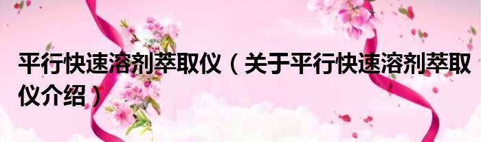 平行快速溶劑萃取儀(關于平行快速溶劑萃取儀介紹)