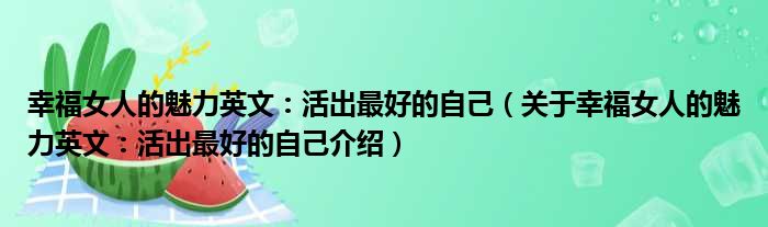 關于幸福女人的魅力英文:活出最好的自己到此分享完畢,希望能幫助到您。
