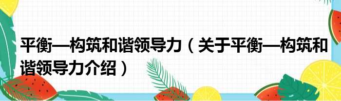 平衡—構筑和諧領導力(關于平衡—構筑和諧領導力介紹)