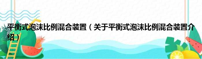 平衡式泡沫比例混合裝置(關于平衡式泡沫比例混合裝置介紹)