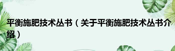 平衡施肥技術叢書(關于平衡施肥技術叢書介紹)