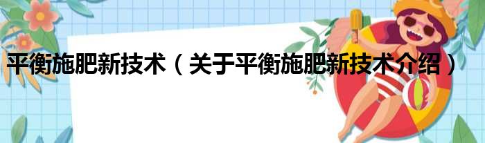 平衡施肥新技術(關于平衡施肥新技術介紹)