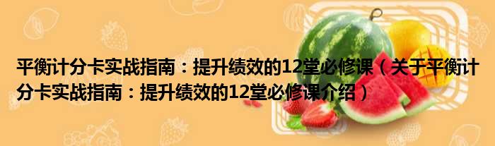 平衡計分卡實戰指南:提升績效的12堂必修課(關于平衡計分卡實戰指南:提升績效的12堂必修課介紹)