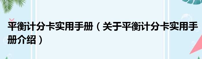 導讀 大家好,笑笑來為大家解答以上的問題。平衡計分卡實用手冊,關于平衡計分卡實用手冊介紹這個很多人還不知道,現在讓我們一起來看看吧!1、