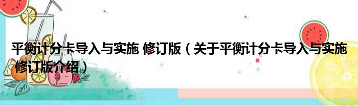 平衡計分卡導入與實施 修訂版(關于平衡計分卡導入與實施 修訂版介紹)